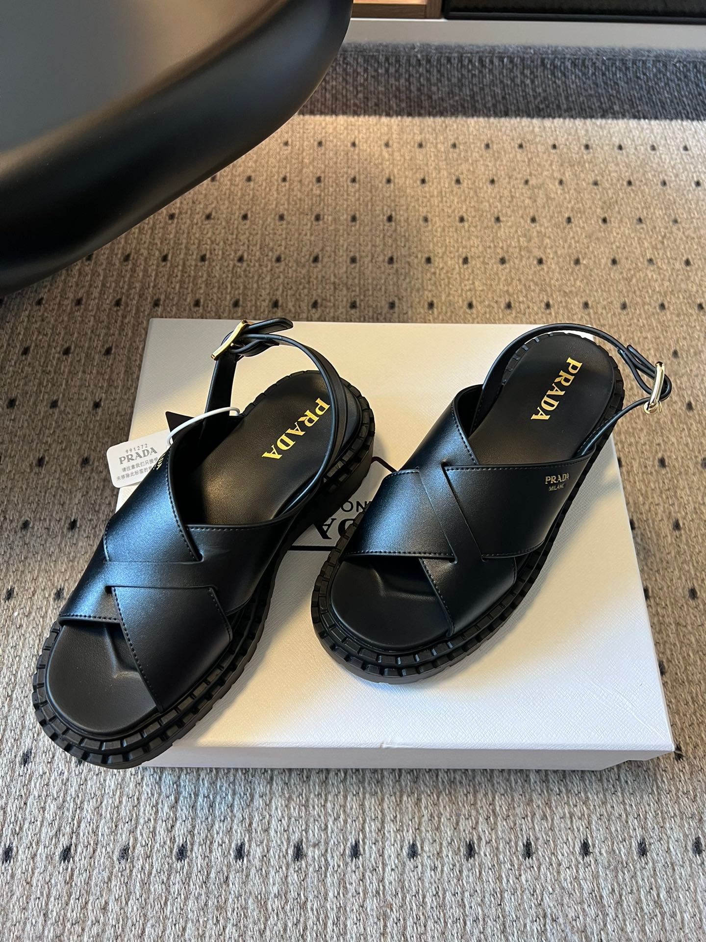Bold and contemporary—Prada Monolith Platform Sandals fuse utilitarian design with luxury craftsmanship, creating a striking statement piece.